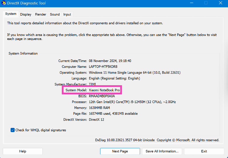 Katso myös:Kannettavan tietokoneen mallin tarkistaminen Windows 11: Helppo vaiheet laitteen tunnistamiseen