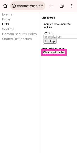 chrome://net-internals/#dns