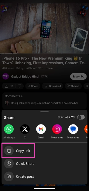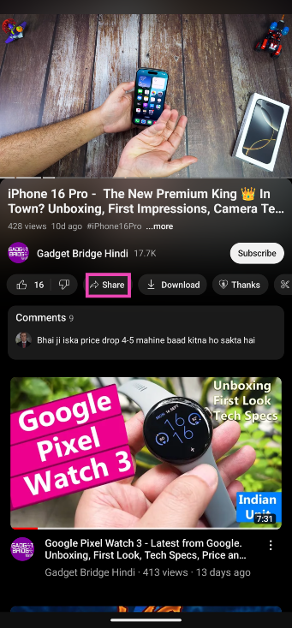 Vaihe 2:PainaJakaakuvake jakopioidalinkki videoon.