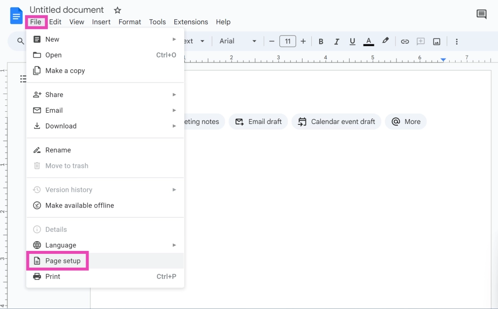 Google -dokumenttien sivun kokoa on kolme suurta tapaa muuttaa. Nopein tapa edetä tämä on valitsemalla 'Sivun asetus' -vaihtoehto tiedostoasetuksista. Tämän vaihtoehdon avulla voit muuttaa asettelua ja sivun kokoa ennen kirjoittamista mitään. Voit käyttää myös sivua-lisäosaa sivua-lisäosaa ja käyttää sitä laajennusasetuksista.