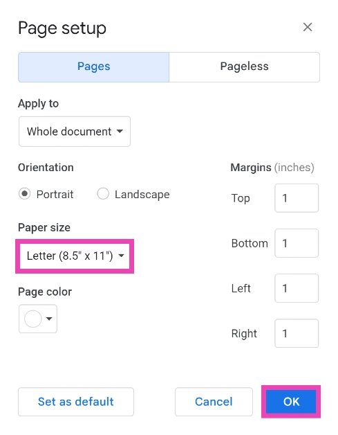 Kuinka vaihdan paperikoon Google -dokumenteissa?