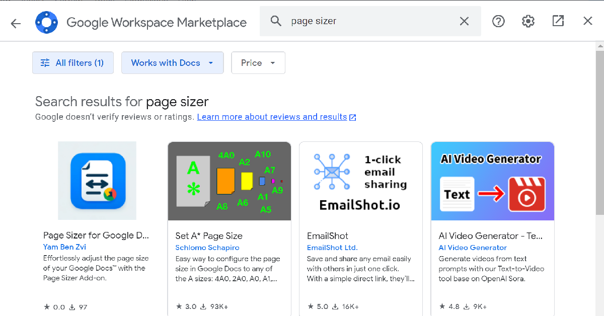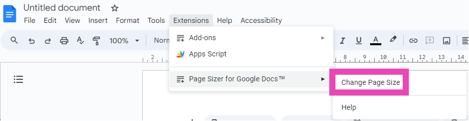 Voit muuttaa lisäosaa sivun koon Google Docs -sovelluksessa
