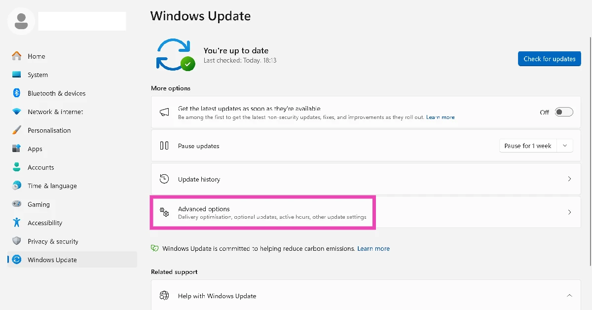 Vaihe 2:ValitseWindows Updatesivupalkista.