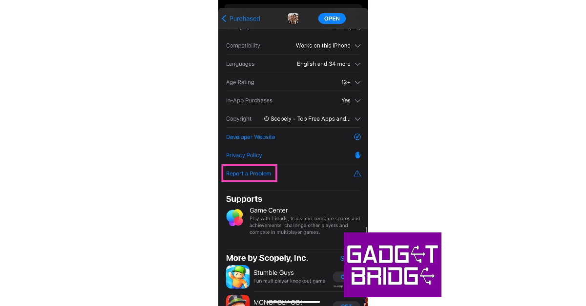 Vaihe 4:Vieritä alas ja valitse Ilmoita ongelma.