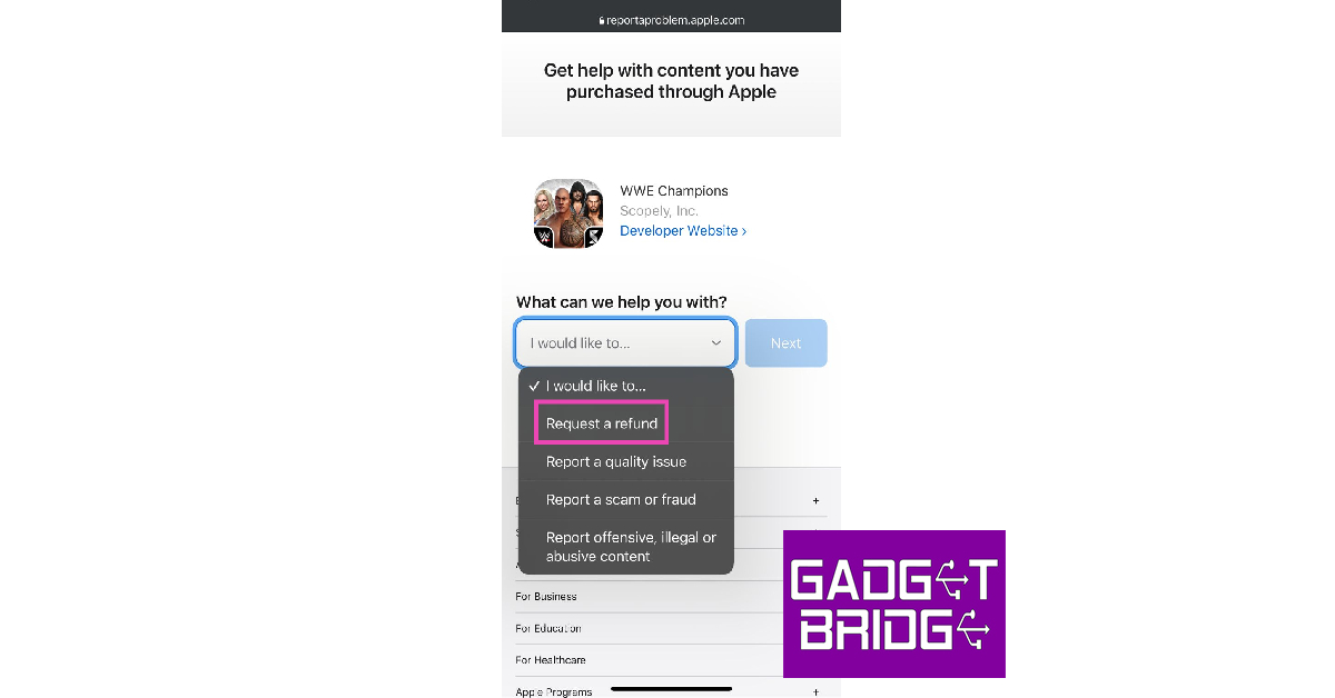 Vaihe 7:Napauta ruutua, jossa sanotaan: "Haluaisin ..." ja valitse pyydä palautus.