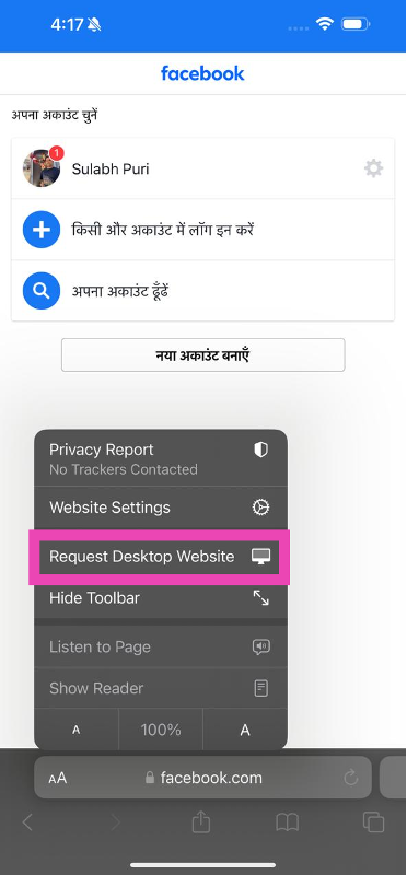Kuinka avaan Facebook -työpöydän verkkosivuston iPhonellani?