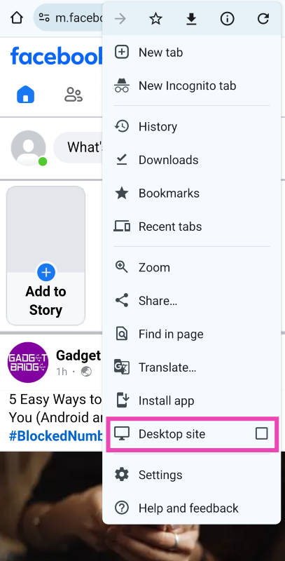 Nämä ovat kolme parasta tapaa avata Facebookin työpöydän verkkosivusto millä tahansa puhelimella. Jos sinulla on ongelmia tiettyjen kuvakkeiden tai välilehtien lyömällä Facebookin mobiiliversiota, siirtyminen työpöydälle auttaa. Alkuperäisen selainsovelluksen työpöytäsivuston pyytäminen voi vaihdella eri älypuhelinten valmistajien keskuudessa, mutta ominaisuus löytyy tyypillisesti selainvaihtoehdoista.