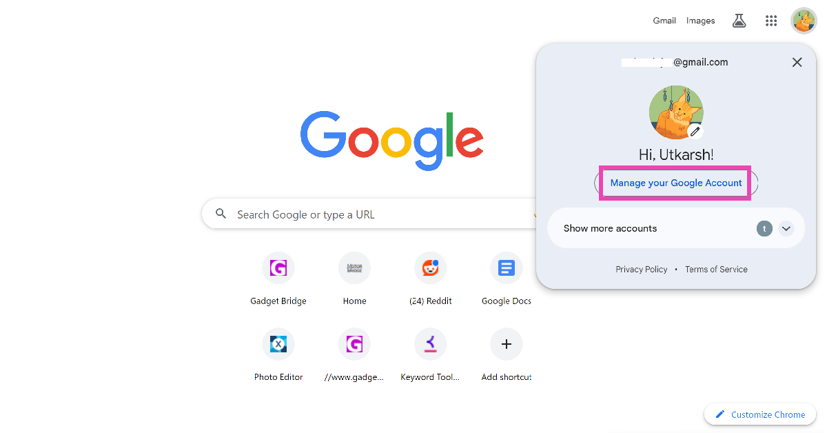 Vaihe 2:NapautaHallinnoi Google-tiliäsi.