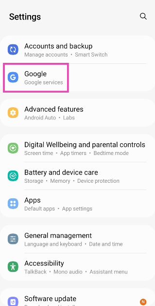 Vaihe 1:Siirry osoitteeseenAsetuksetja valitseGoogle.