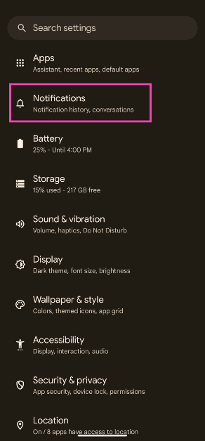 Vaihe 1:Mennä jhkAsetuksetja valitseIlmoitukset.