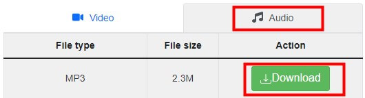 Vaihe 3.Tallenna se tietokoneellesi, ja jos haluat myös ladata MP3 -version, napsauta vain “Audio”> “Lataa”.