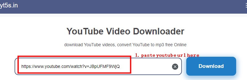 Vaihe 1.Siirry tälle verkkosivustolle ja liitä YouTube -videon URL -osoite, jonka haluat ladata.