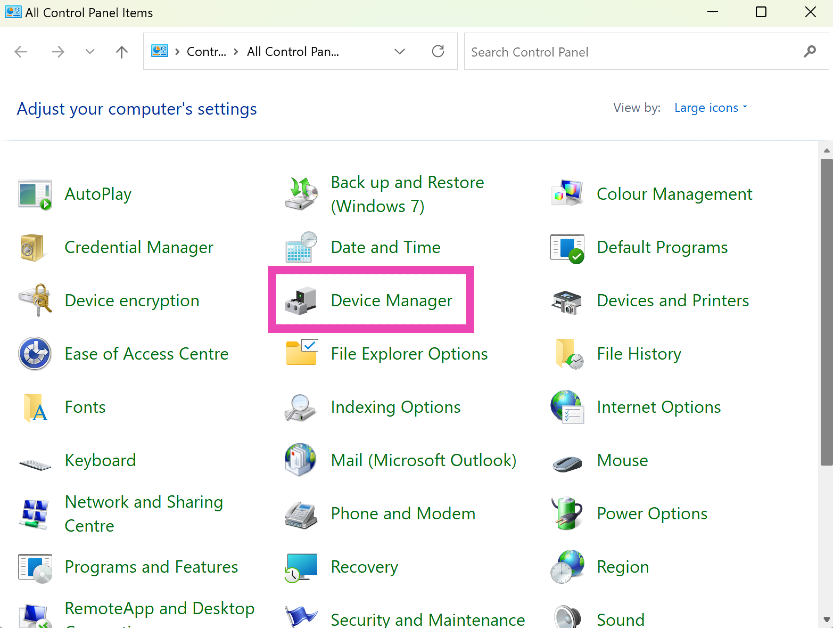 Vaihe 1:Siirry osoitteeseenOhjauspaneelija valitseLaitehallinta.