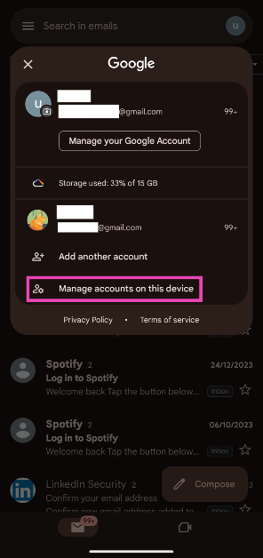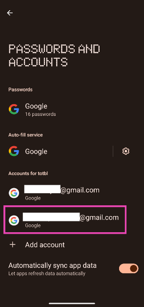 Vaihe 2:NapautaGmail-tilijonka haluat poistaa laitteesta.