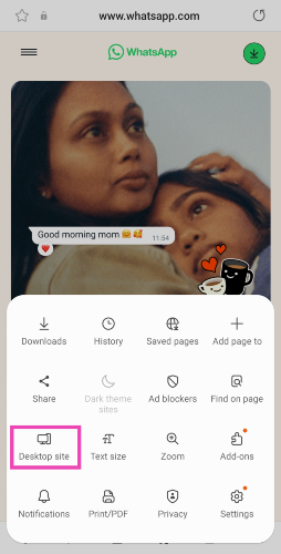 Vaihe 2:NapauttaaHamburger -valikon kuvakenäytön oikeassa alakulmassa ja valitseTyöpöytäsivusto.