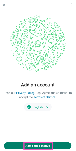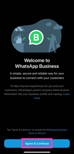 Vaihe 2:Käynnistää WhatsApp -liiketoiminnan ja suostuehdot.
