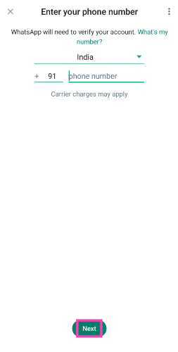 Vaihe 7:KirjoittaapuhelinnumeroRekisteröity toissijaisella WhatsApp -tililläsi.