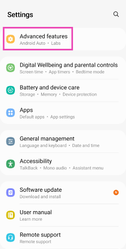 Vaihe 1:Mennä jhkAsetuksetja valitseEdistyneitä ominaisuuksia.