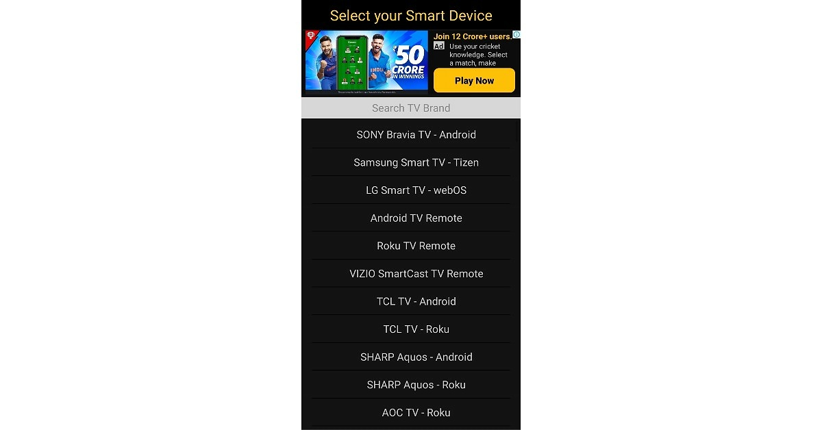 Vaihe 4:Puhelimesi skannaa lähellä olevia televisioita. ValitaTVluettelosta.