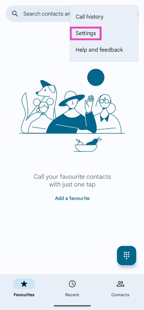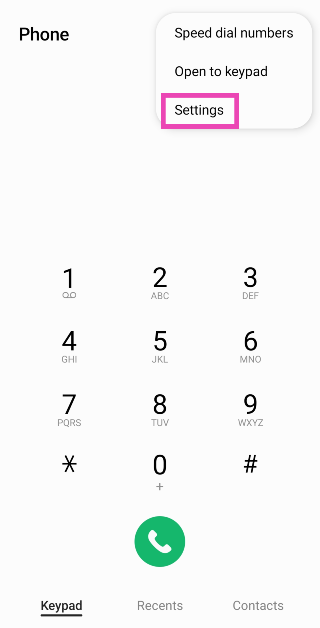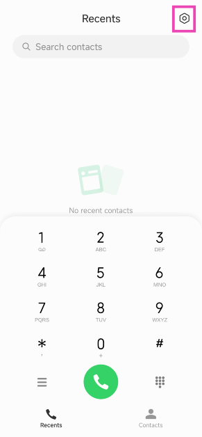 Vaihe 1:Käynnistänatiivi soittosovellusja osuiAsetuksetkuvaketta näytön oikeassa yläkulmassa.