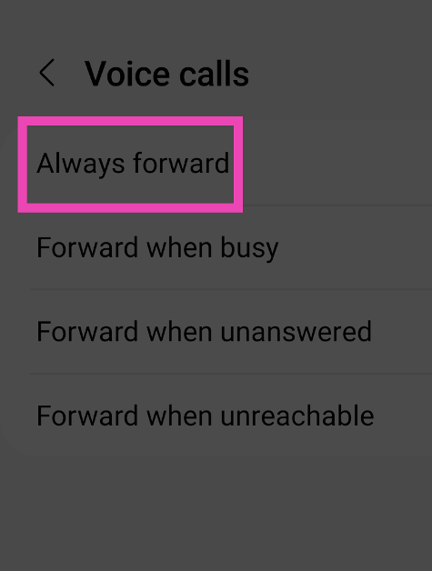 Siirry osoitteeseenPuhelin> Asetukset> Lisäpalvelut> Soitonsiirtoja sammuta se valitsemalla Ei koskaan.