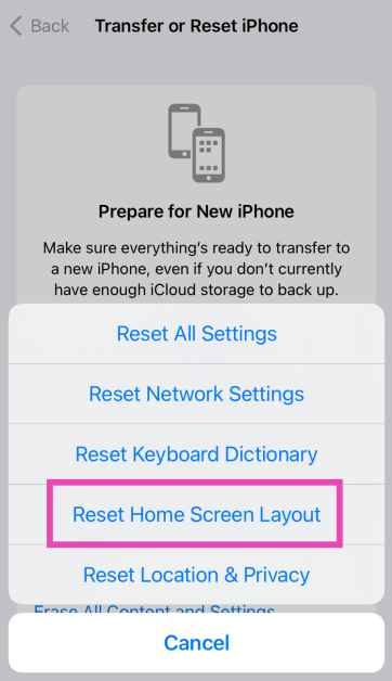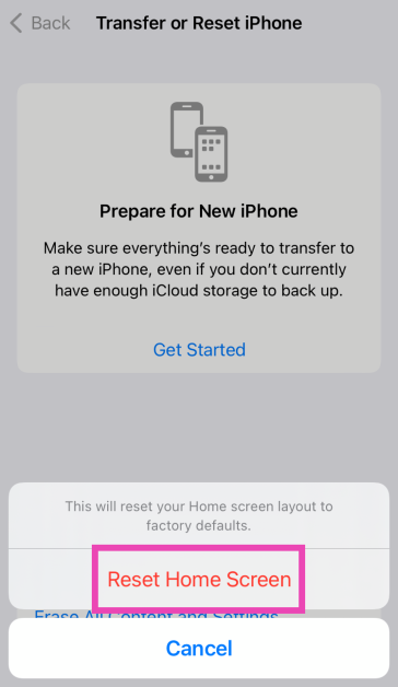 Vaihe 2:Vieritä alas ja valitseSiirrä tai nollata iPhone.
