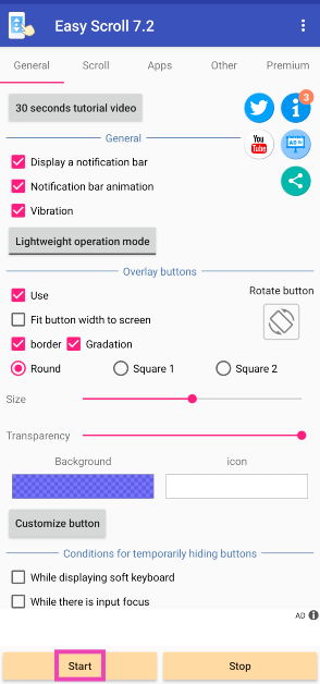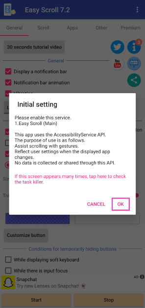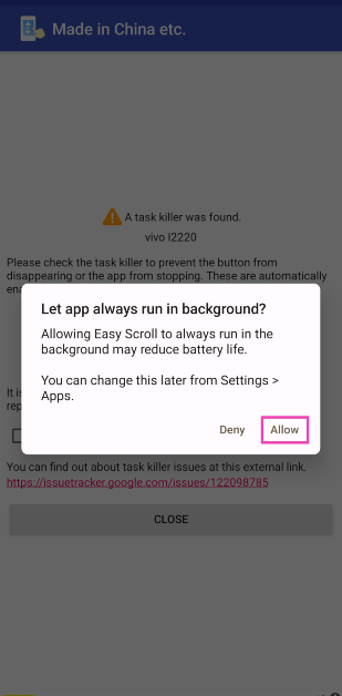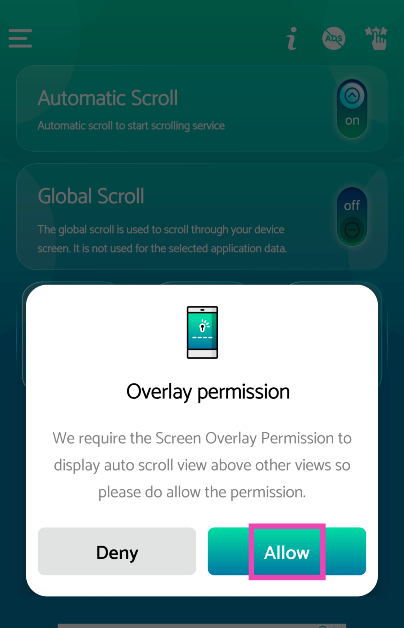 Vaihe 3:Antaa sille lupaPäätä automaattisen rulla-painikemuissa sovelluksissa.