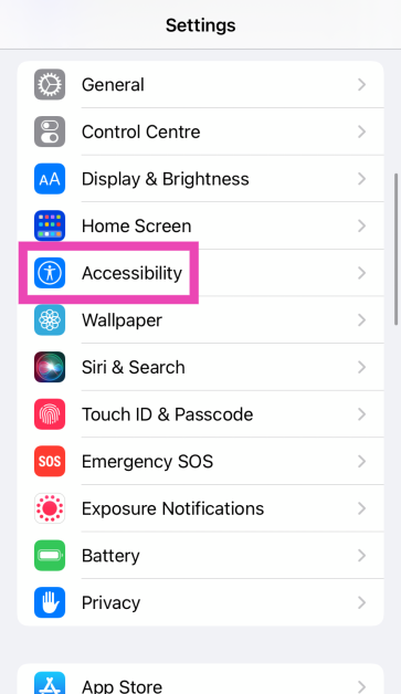 Vaihe 1:Mennä jhkAsetuksetja valitseSaavutettavuus.