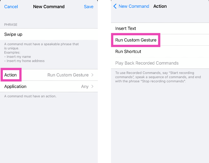 Vaihe 7:NapsauttaaToimintaja valitseSuorita mukautettu ele.