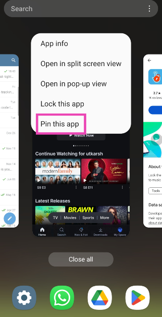 Jos luovutat puhelimesi jollekin toiselle etkä halua heidän snooppaavan, voit kiinnittää sovelluksen näytölle sen sijaan, että poistaisit koko kosketusnäytön käytöstä. Tämän avulla henkilö voi selata sovelluksen sisällä, mutta he eivät pääse mihinkään sen ulkopuolelle. Näin voit ottaa sovelluksen kiinnittämisen käyttöön.
