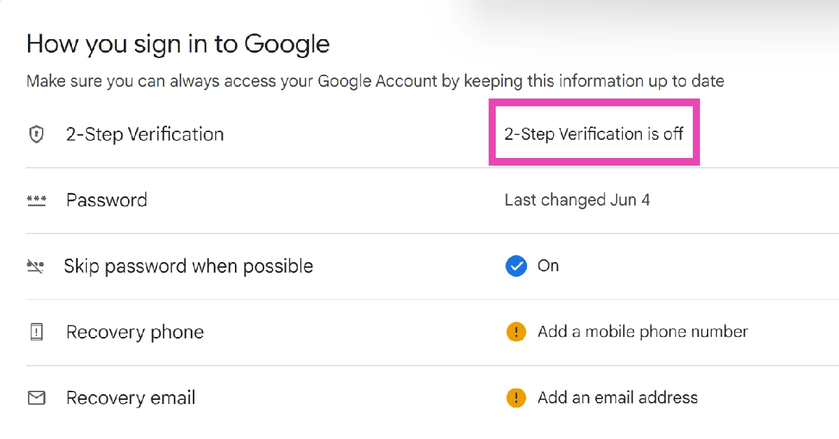 Vaihe 3:Napsauttaa2-vaiheinen varmennus.