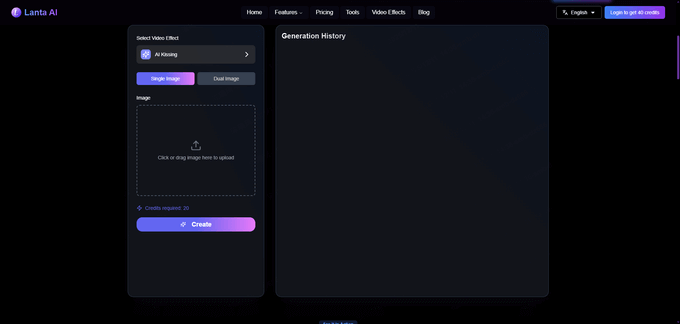 Lanta AI on monipuolinen tekoälyvideogeneraattori, joka voi luoda realistisia suudelmakohtauksia kahden ihmisen välillä. Edistyneen kasvojentunnistuksen ja liikkeenseurannan ansiosta videosi näyttää sujuvalta ja luonnolliselta.