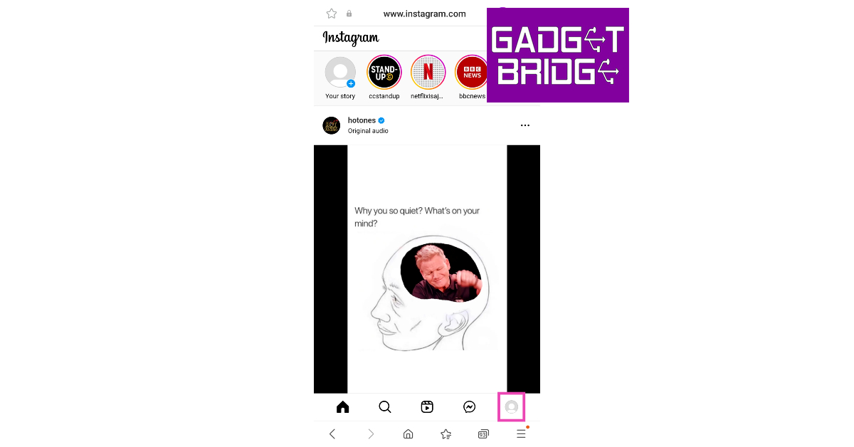 Vaihe 1: KäynnistääÄlypuhelimesi haluamasi verkkoselainsovellus ja siirry Instagram -verkkosivustolle.Kirjautua jhkInstagram -tilisi.