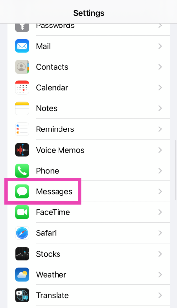 Vaihe 1:Mennä jhkAsetuksetja valitseViestit.