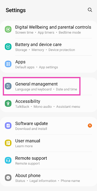 Vaihe 1:Mennä jhkAsetukset, vieritä alas ja valitseYleinen johto.