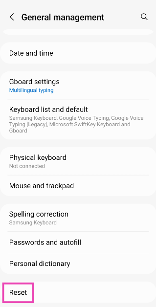 Vaihe 4:Vieritä alas ja napautaNollata.