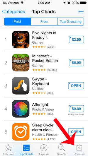 IPhone 5: lläsi on mahdollisuus ladata sovelluspäivitykset automaattisesti iOS 8: ssa, ja on olemassa monia sovelluspäivityksiä, joita voi tapahtua ilman, että tiedät, että se on tapahtunut. Joten jos haluat tarkistaa ja nähdä luettelon äskettäin päivitetyistä sovelluksista, noudata vain alla esitettyjä vaiheita.
