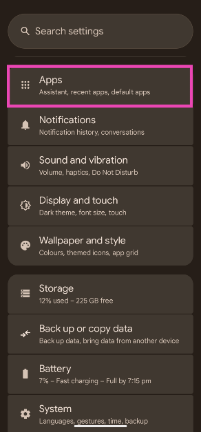 Vaihe 1:Mennä jhkAsetuksetja valitseSovellukset.