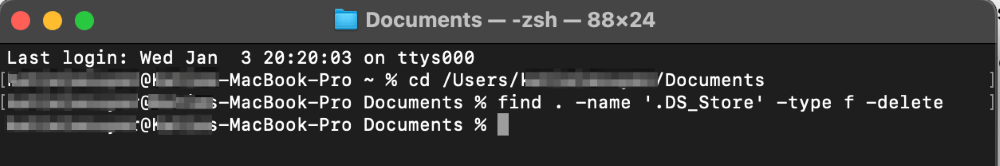 Tietyn kansion .DS_Stores-tiedostojen manuaalinen poistaminen