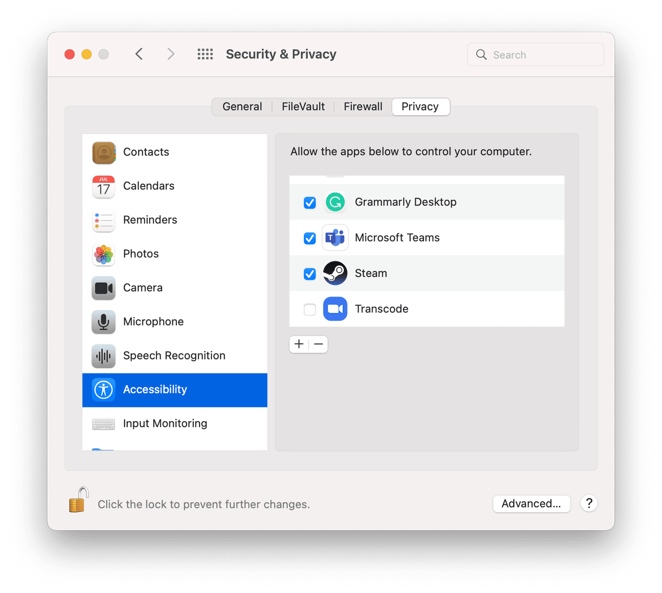 Jos huomaat, että jotain on vialla, valitse lukkokuvake vasemmalle alakulmaiseksi muutoksiksi.