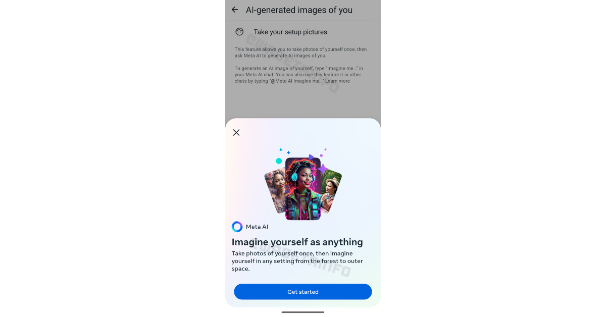 Vaihe 8:Voit myös kutsuaMeta sinulla on bottiKeskusteluissasi muiden ihmisten kanssa ja käytä 'Kuvittele minua'komentoLuo kuviaAI -avatarisi kanssa.