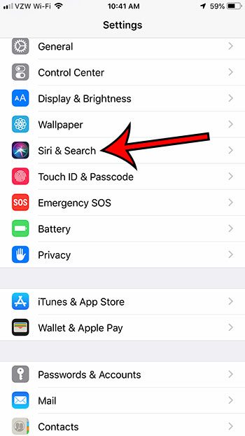 Vaihe 2: Vieritä alas ja valitseSiri & hakuvaihtoehto.