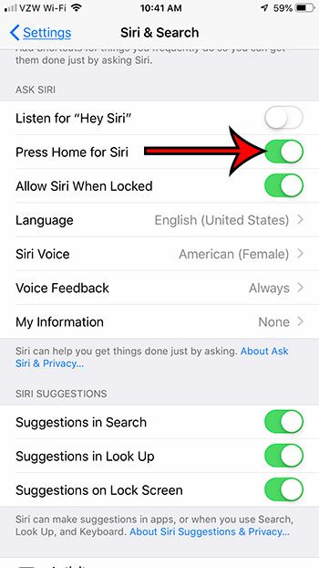 Tämän artikkelin vaiheet suoritettiin iPhone 7 Plus -sovelluksella iOS 12.2: ssa. Suorittamalla nämä vaiheet sammutat kyvyn käynnistää Siri painamalla ja pitämällä kotipainiketta.