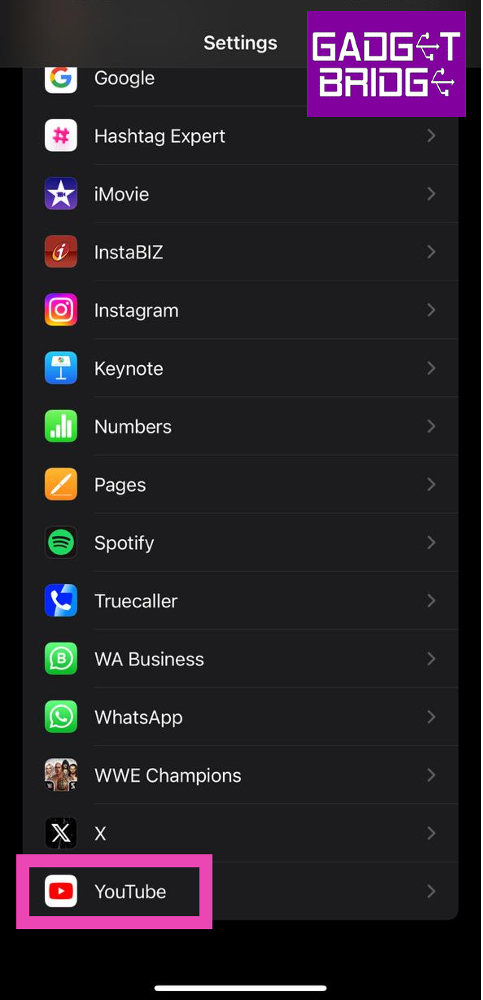 Vaihe 1:Mennä jhkAsetuksetja valitseYouTube.