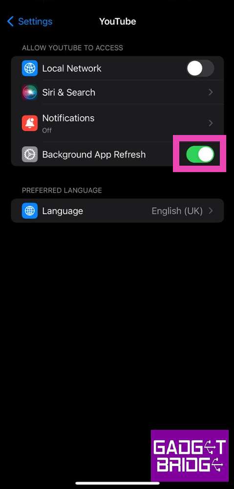 Taustasovelluksen päivitys päälle varmistaa, ettäja suorittaa tarvittavat toiminnalliset tehtävät, kun et käytä sitä aktiivisesti. Se voidaan sammuttaa sen jälkeen, kun sovellus on vakiintunut eikä kaatu satunnaisesti.