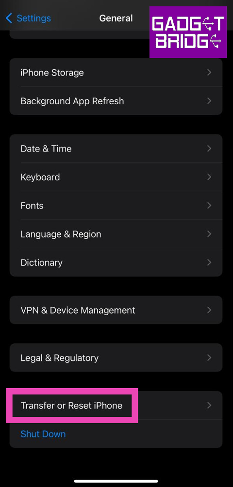 Vaihe 2:Vieritä alas ja valitseSiirrä tai nollata iPhone.